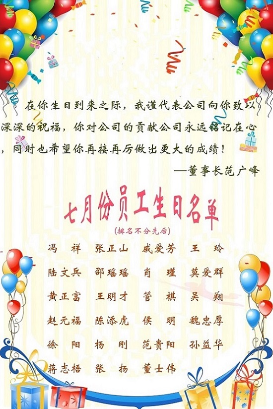 【生日祝福】恭祝7月生日的員工生日快樂!